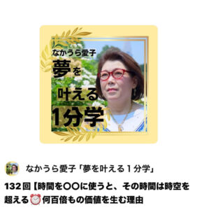 ご視聴は、下記画像をタップ(クリック)してお聞き頂けます^^ 夢を叶える1分学 スタンドFMラジオ 毎週金曜日夕方17:30~ 133回「感謝で満ちた時間はあなたの未来を大きく動かす」 Follow me!