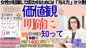 拙著『女性が起業して成功するためには「与え方」が9割』ごま書房新社を朗読しながら、