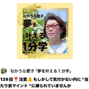 139回注意⚠️もしかして気付かない内に“当たり前”マインドに縛られていませんか?】 ご視聴は⬇️下記画像をクリック(タップ)♪ 10/31(金)夢を叶える1分学ス […]