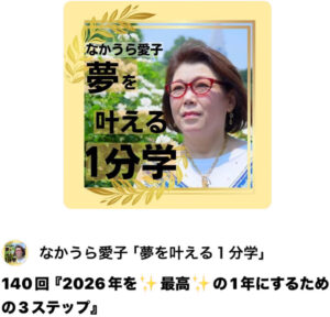 140回『2026年を最高の1年にするための3ステップ』 ご視聴は⬇️下記画像をクリック(タップ)♪ 11/7(金) 夢を叶える1分学 スタンドFMラジオ 好評配信中〜!
